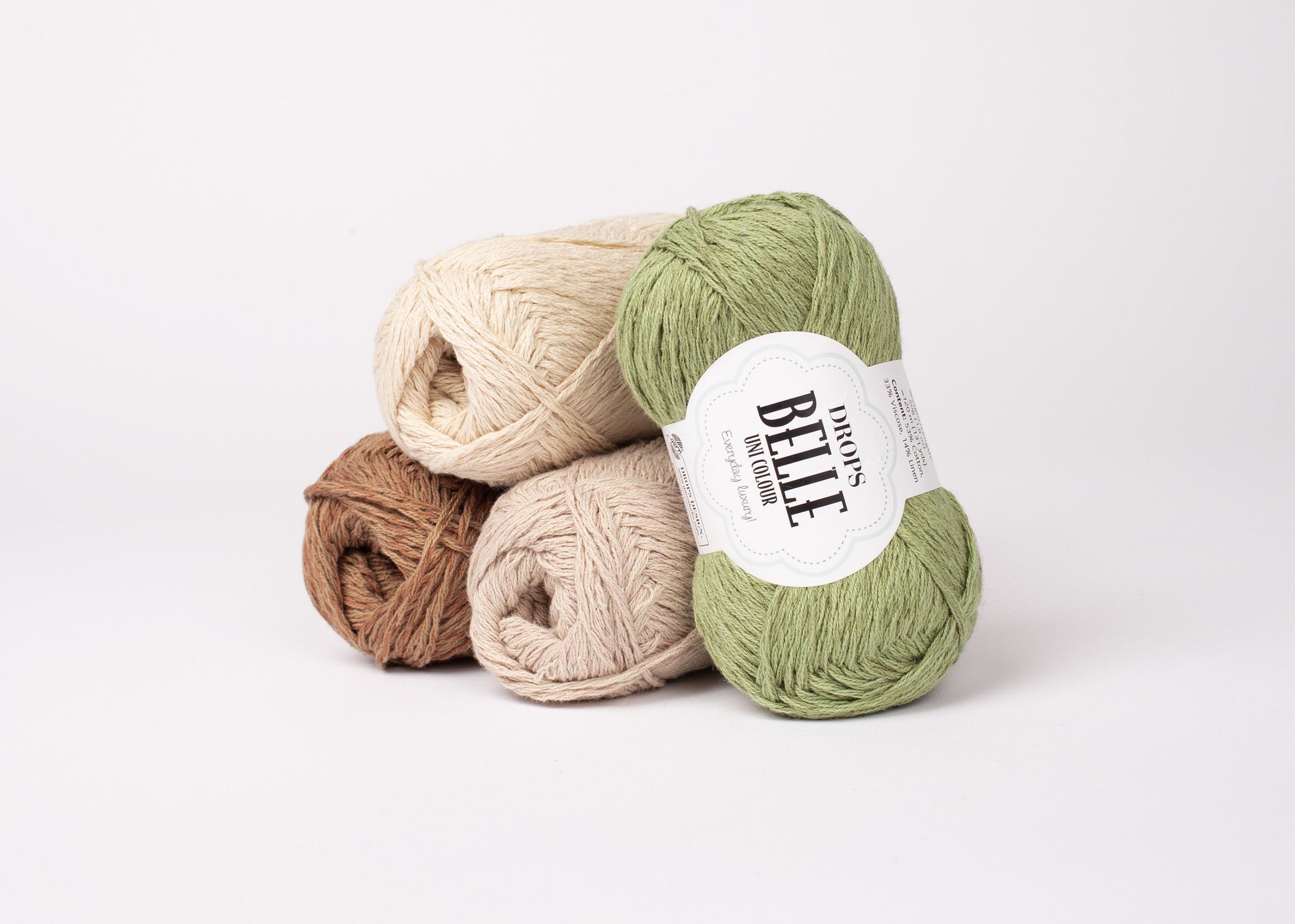 Der tolle Mix aus Baumwolle, Viscose und Leinen macht DROPS Belle zu einem atmungsaktiven Ganzjahresgarn mit dezentem Schimmer und wunderbarer Textur, es kann bestens direkt auf der Haut getragen werden.