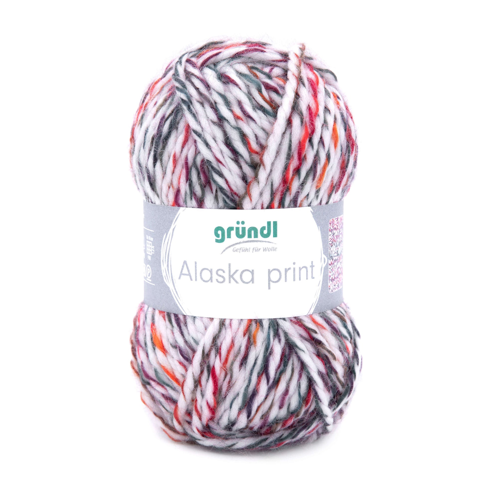 Gründl Alaska Print, Chunky Garn, 100g Knäuel Winterwolle Schnellstrickgarn weich warm kuschelig leicht Farbe wählen