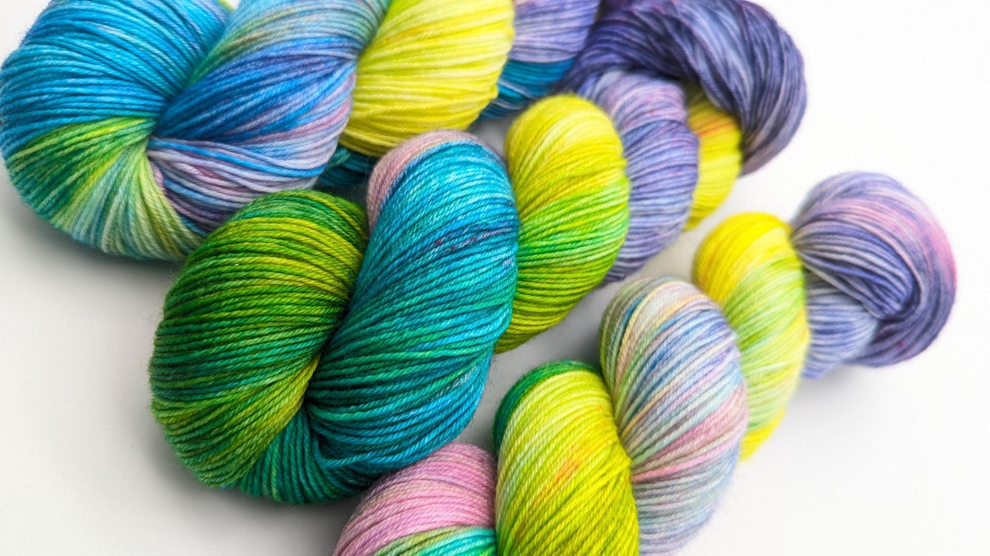 Handgefärbte Sockenwolle 4 fach High Twist 100g/400m Merino extrafine "Happy Colours" gelb türkis