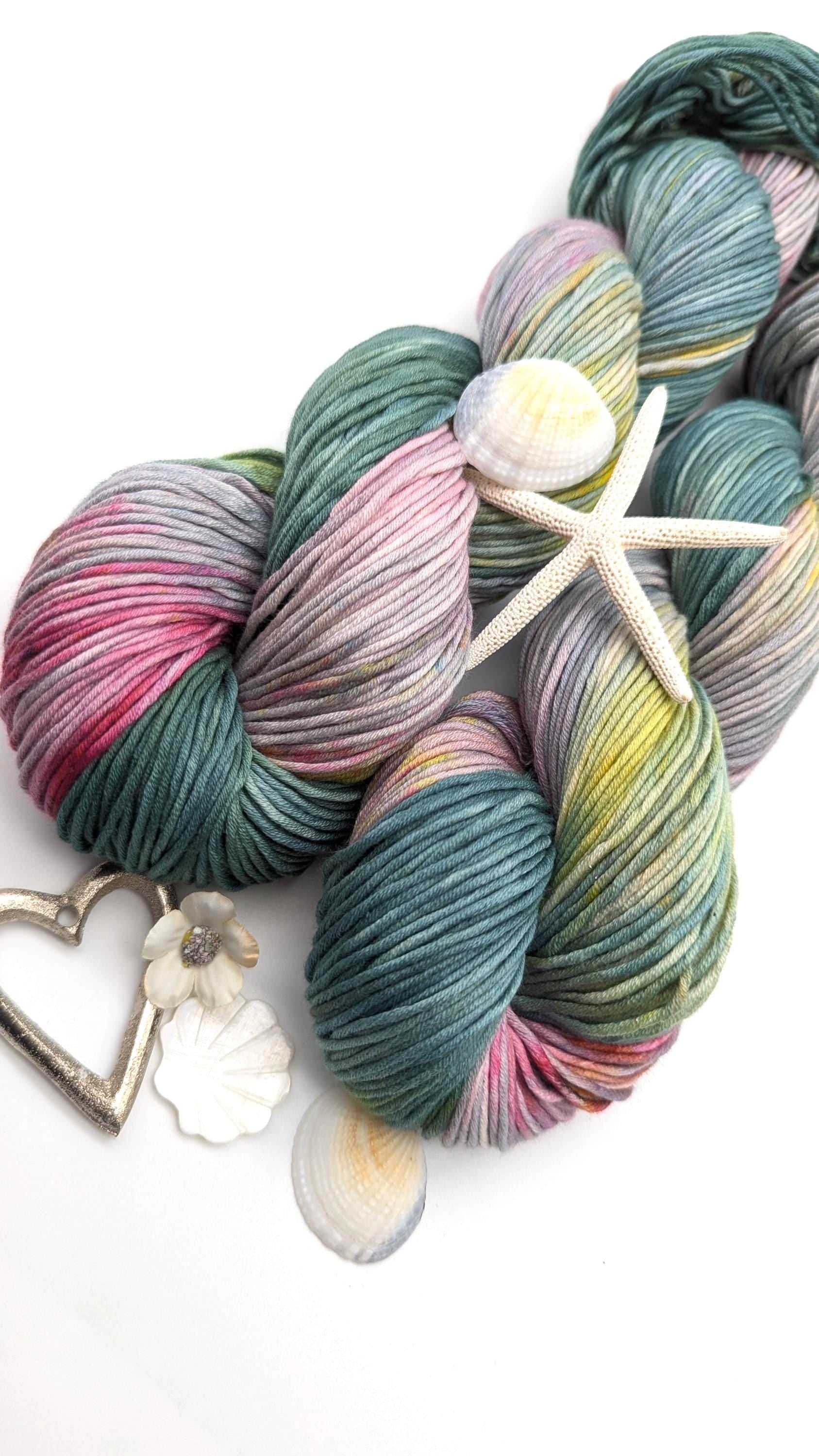 Handgefärbtes Baumwollgarn Pima Cotton 100g/212m reine Baumwolle "Unterwasserparadies" NS 5 blau türkis