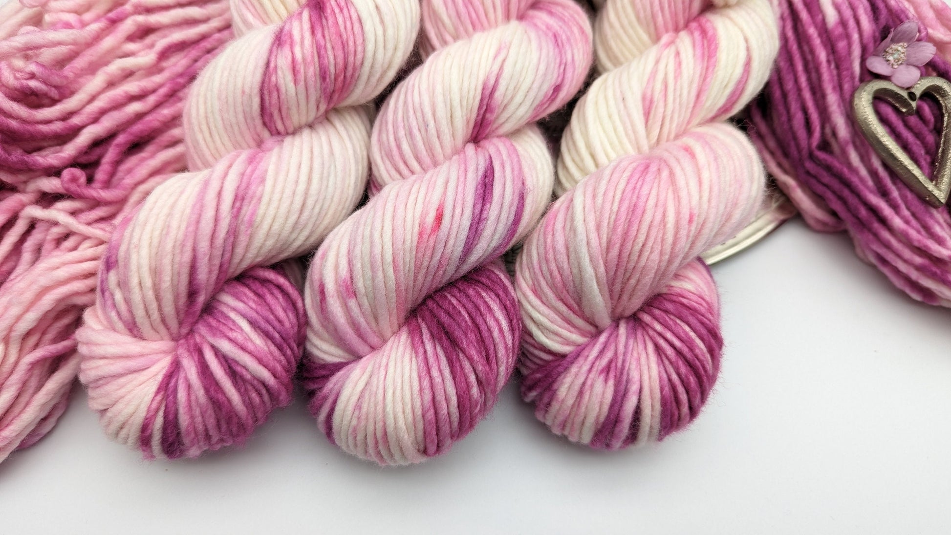 Handgefärbtes Garn 100g/100m Reine Schurwolle "Frosty Rose" Merino extrafine rosa - violett weiß