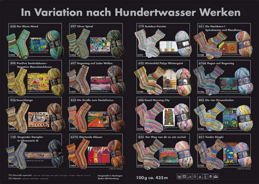 Die Varianten sind den Werken von Hundertwasser nachempfunden