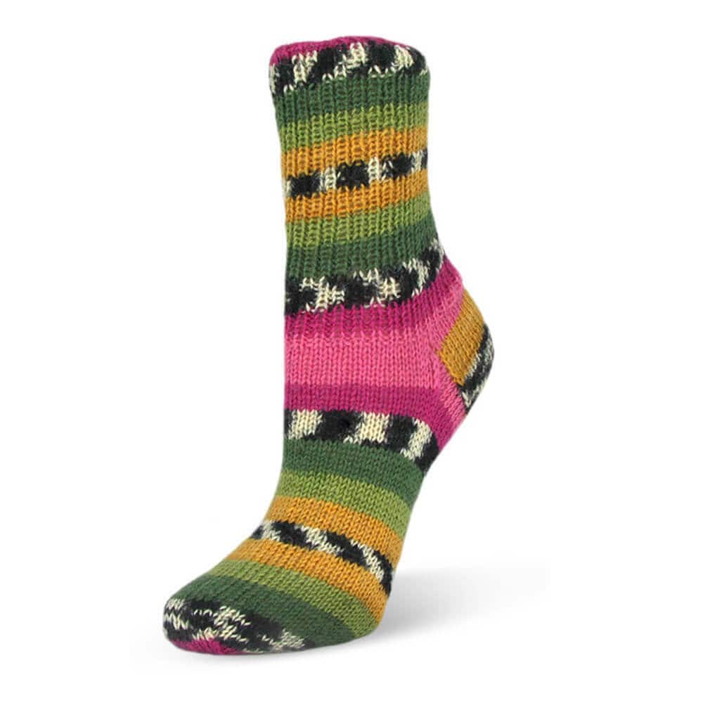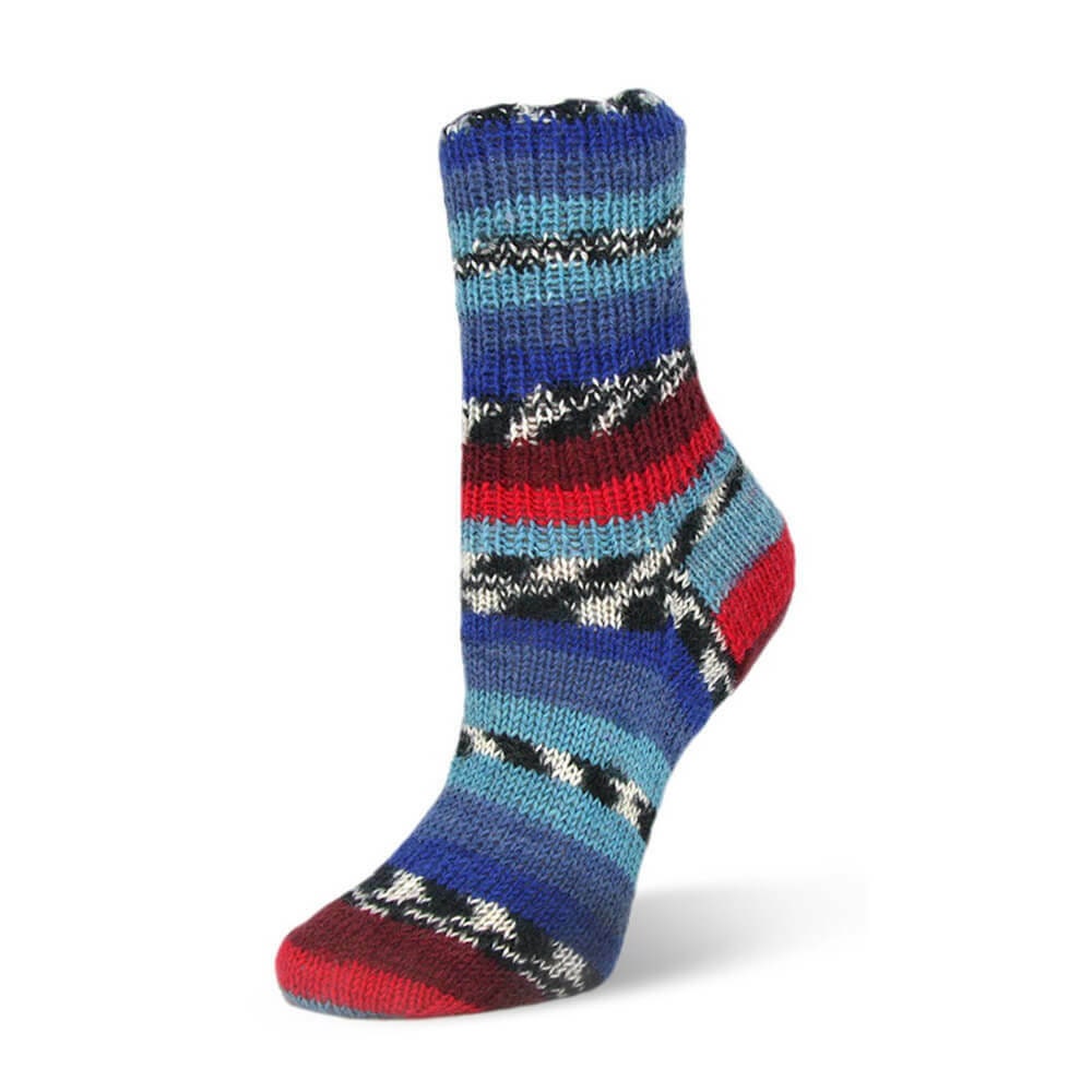Sockenwolle RELLANA Flotte Socke Merino Seide LL 420m/100g superwash bunt Muster aus dem Knäuel